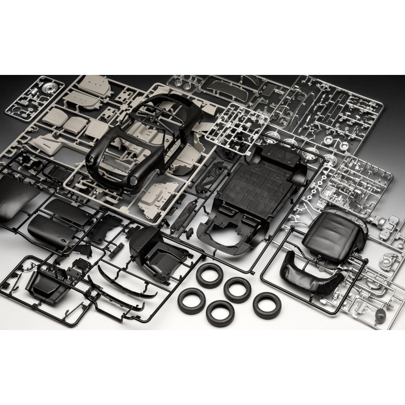 Revelll propone in questo kit la prima vettura sportiva prodotta da Porsche. Il numero di costruzione consecutivo 356, fungeva da designazione del tipo. I primi esemplari di 356 hanno iniziato a circolare l'8 Giugno 1948. Il modello proposto, la Type C dal design accattivante, è stata prodotta dal 1964 in poi e rappresentava l'ultima serie di questo fortunato modello. Il suo 1600 cc produceva 75 CV ed offriva un'incredibile velocità massima di 175 km/h.